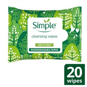 Simple Kind to Skin Cleansing Wipes Biodegradable 20 Wipes